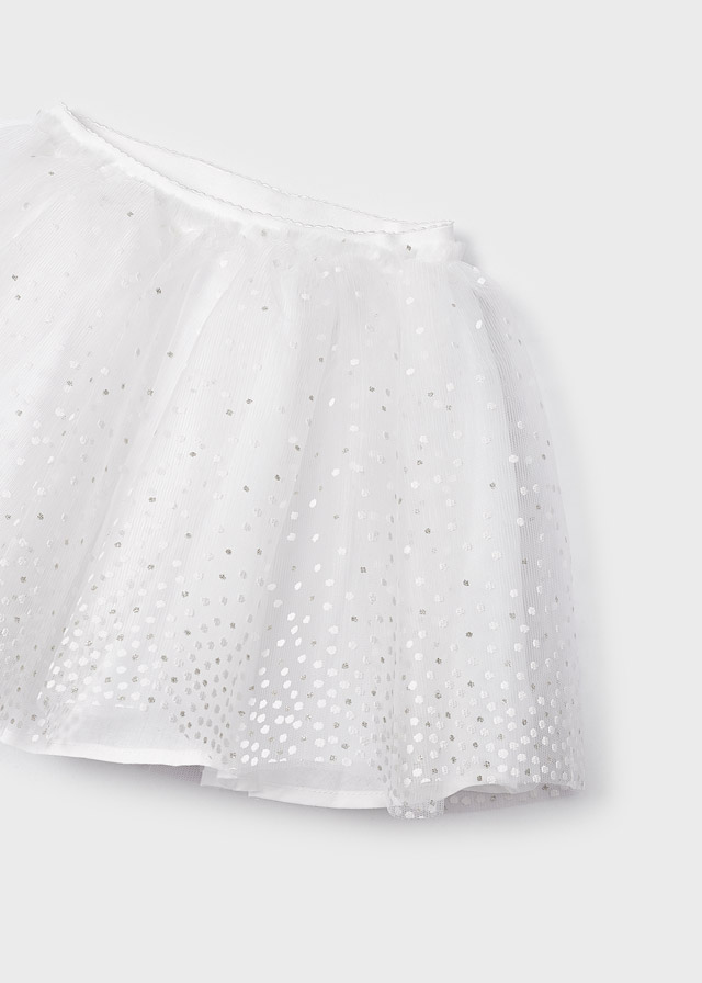 Krótka spódniczka dla dziewczynki. Elastyczna gumka w pasie dla lepszego dopasowania. Artykuł wykonany z lekkiego i zwiewnego tiulu. Ozdoby: glitter.