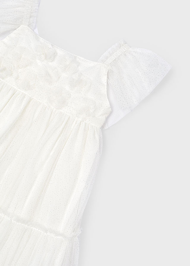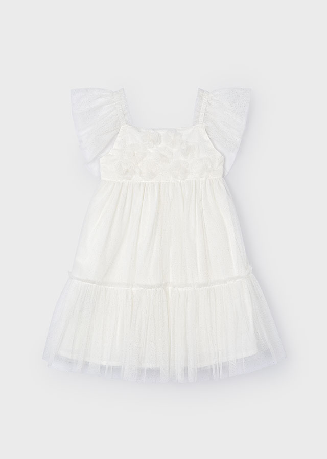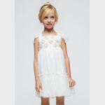 Z przodu urocze kwiaty wykonane z tego samego materiału co sukienka.