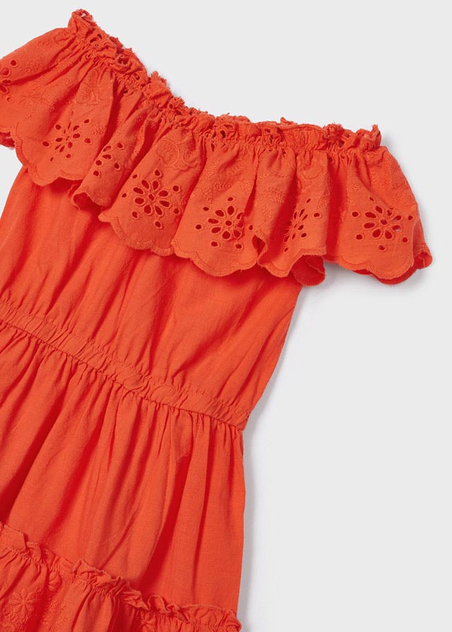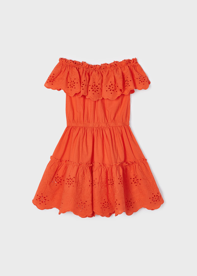 MAYORAL 3929-88 Sukienka z ażurem z bawełny dla dziewczynki MINI