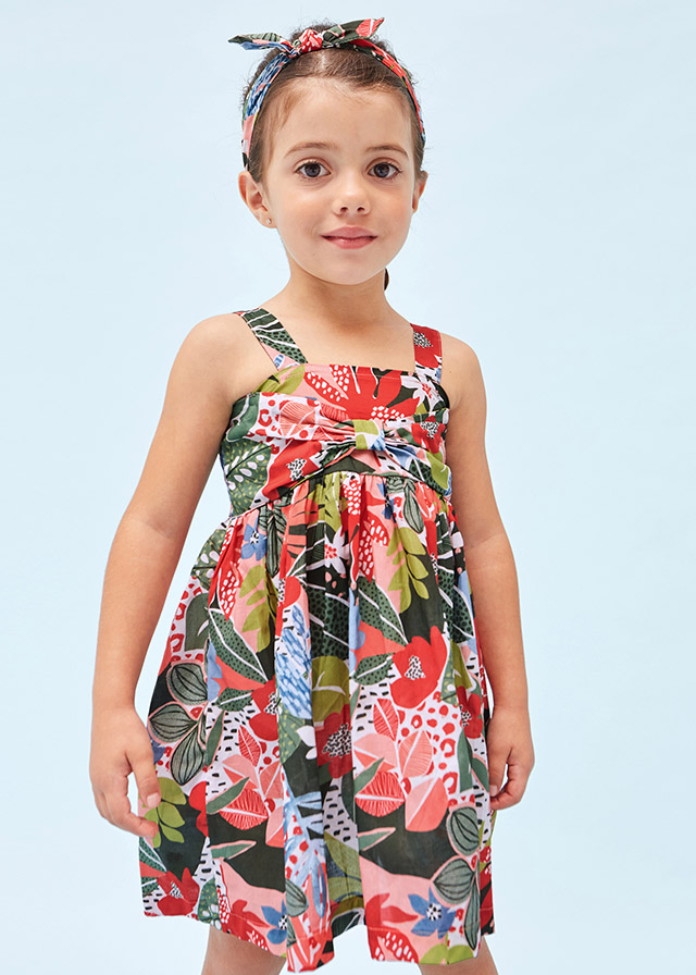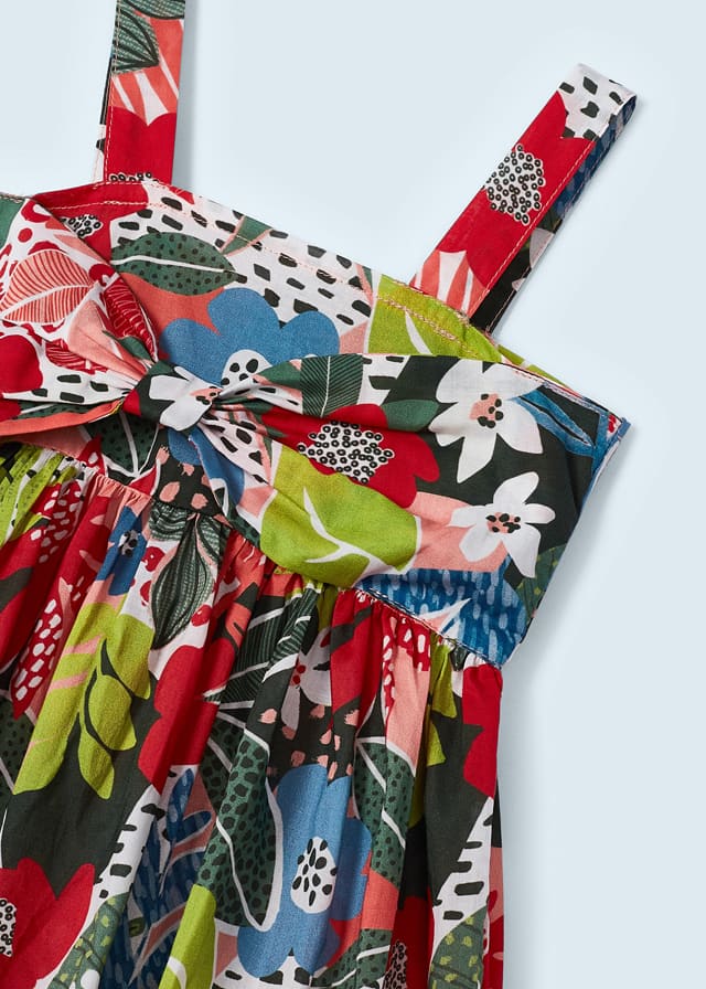 Sukienka na ramiączkach dla dziewczynki. Kwadratowe wycięcie pod szyją. Artykuł wykonany ze 100% bawełny. Projekt z nadrukiem.