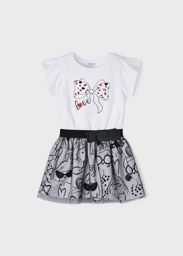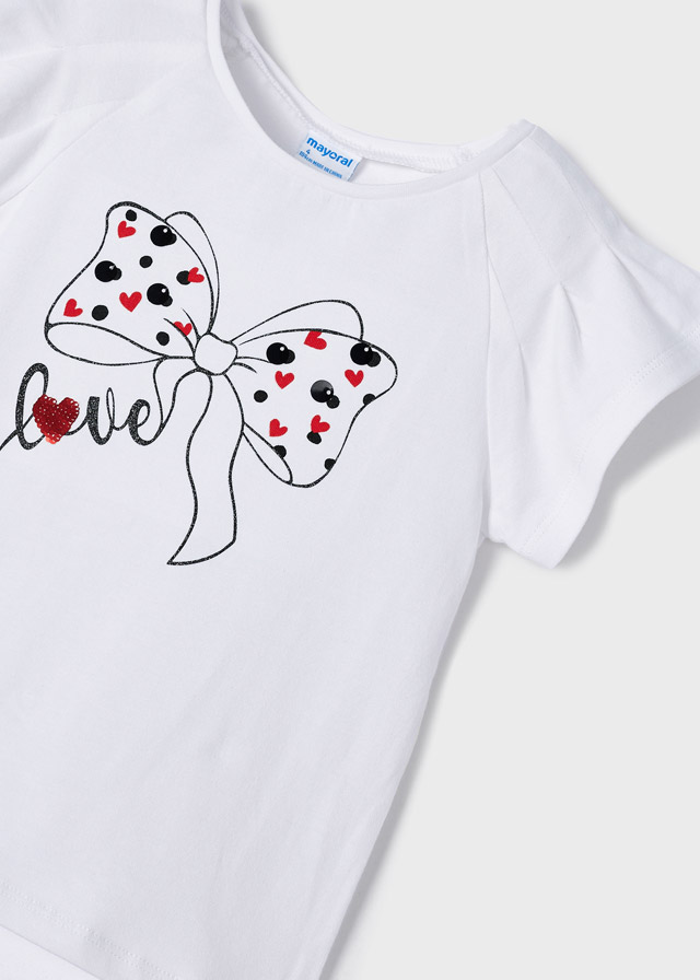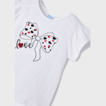 Koszulka z krótkim rękawem dla dziewczynki. Okrągły dekolt. Delikatna i elastyczna bawełna. Projekt z nadrukiem.