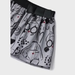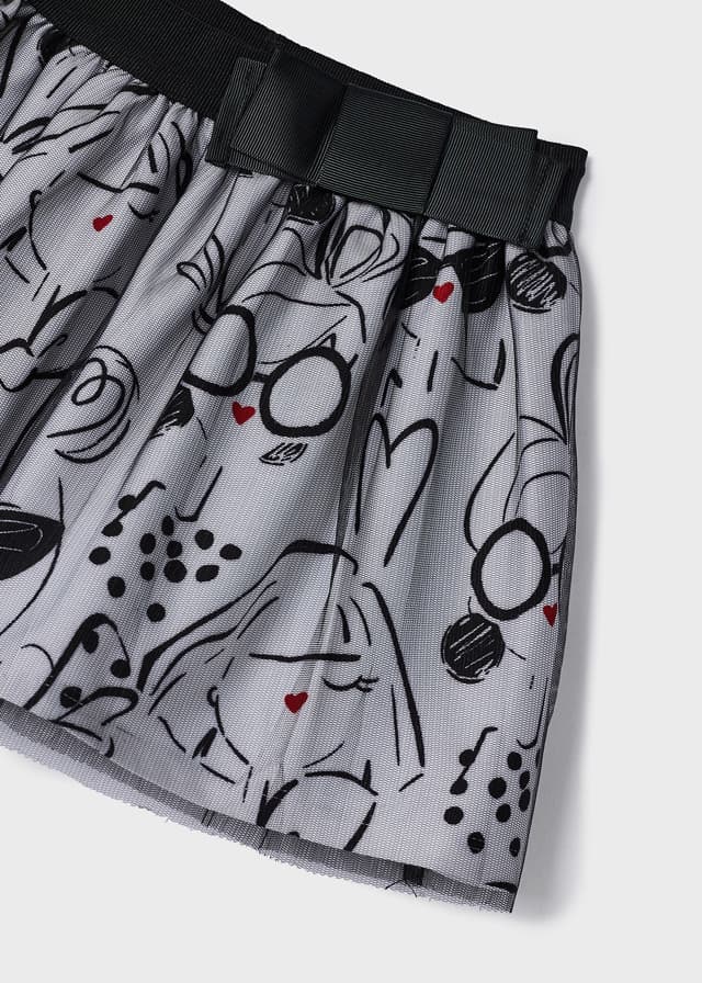 Krótka spódniczka dla dziewczynki. Elastyczna gumka w pasie dla lepszego dopasowania. Ozdoby: aplikacja w postaci kokardki.