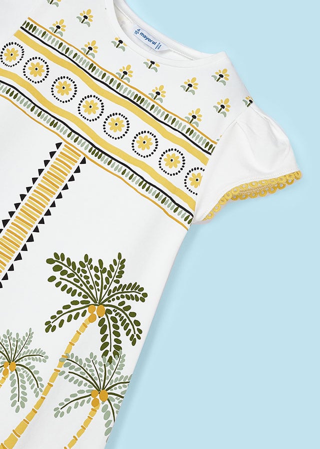 MAYORAL 3949-61 Sukienka z nadrukiem bawełna palmy dla dziewczynki MINI