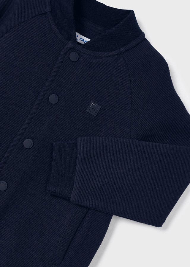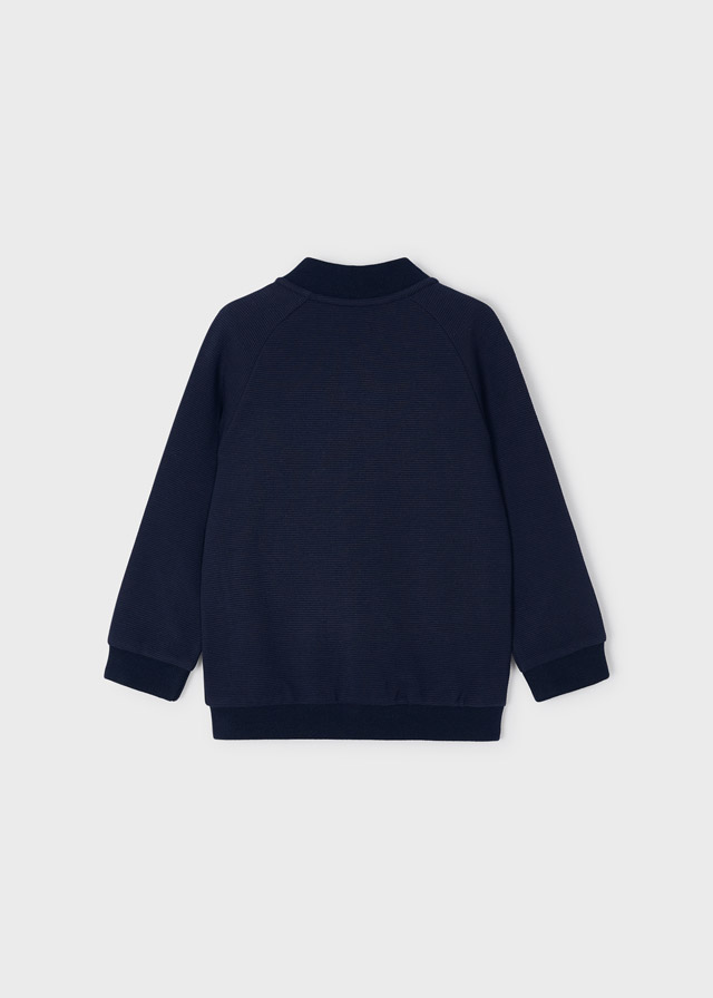Bluza z długim rękawem dla chłopca. Stójka. Zapięcie na zatrzaski z przodu. Kieszenie po bokach.