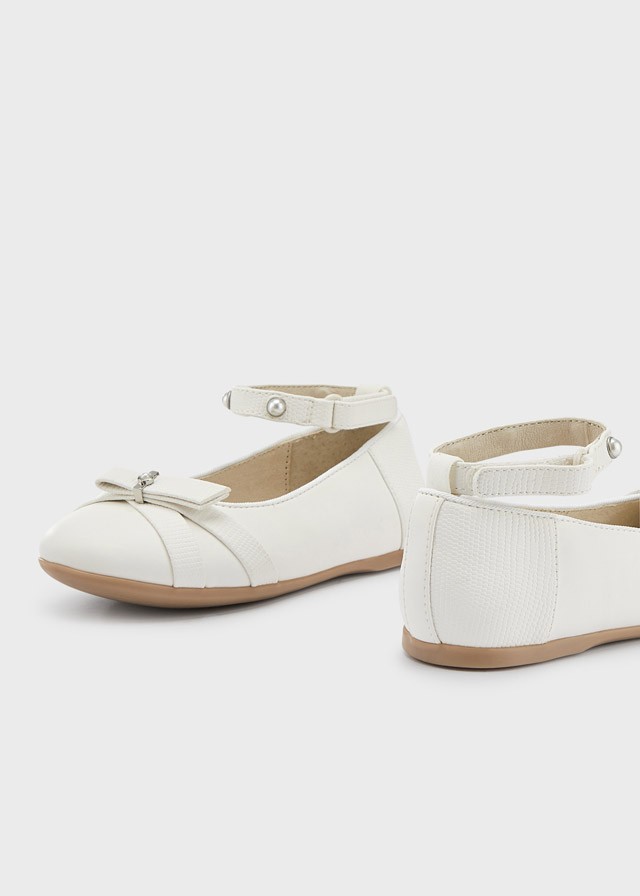 Baleriny dla dziewczynki w dziewczęcym i eleganckim stylu. Dzięki tym butom uzupełnisz wszystkie wyjątkowe stylizacje. Buty ze skórzaną wyściółką wewnętrzną i podeszwą wewnętrzną. Wszystkie nasze buty wykonane są ze skóry bez dodatku chromu. Antypoślizgowa i elastyczna gumowa podeszwa. Zapięcie na pasek wokół kostki wyposażony w rzep dla lepszego przylegania do nóżki dziecka