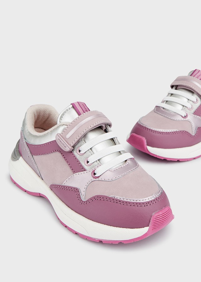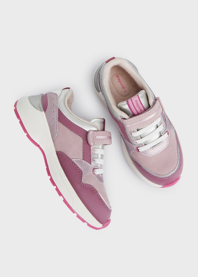 Buty sportowe dla dziewczynki, uniwersalne na codzienne przygody. Zewnętrzna część wykonana z połączenia skóry i innych materiałów. Wszystkie nasze buty wykonane są ze skóry niezawierającej chromu. Wyjmowana antybakteryjna, oddychająca wkładka Sport Comfort pochłaniająca wilgoć utrzymuje stopę suchą i wolną od nieprzyjemnego zapachu na dłużej. Zaprojektowana specjalnie dla zapewnienia większego komfortu. Antypoślizgowa i elastyczna gumowa podeszwa. Zapięcie na regulowany rzep, co gwarantuje doskonałe przyleganie do stopy. Elastyczne dekoracyjne sznurówki.