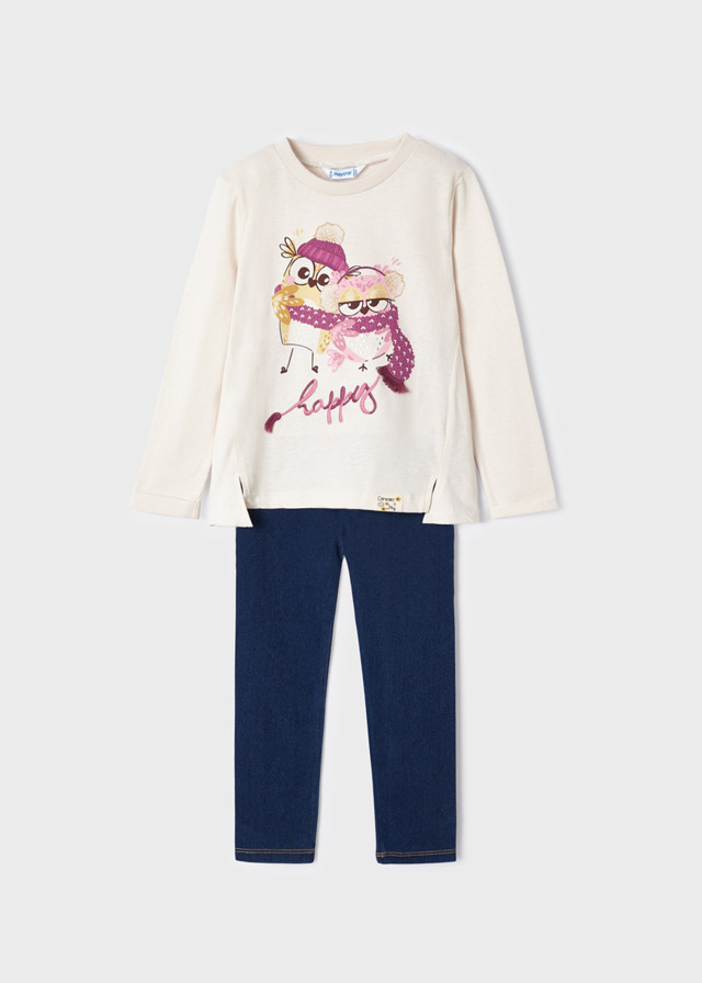 MAYORAL 4788-33 Komplet 2-częściowy sowy z leginsami dla dziewczynki MINI