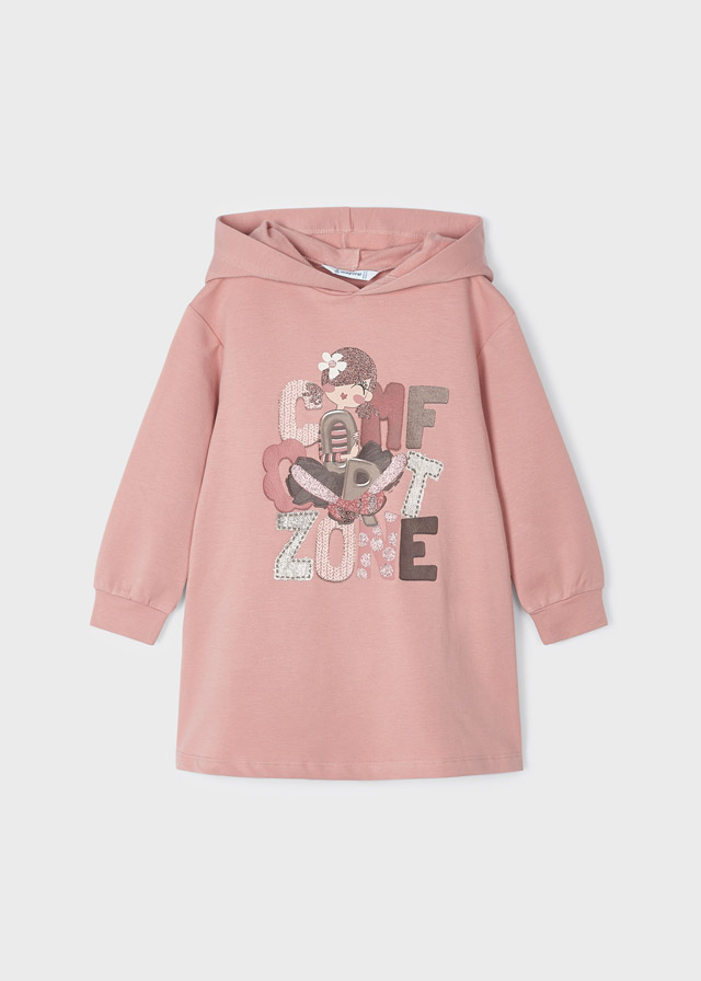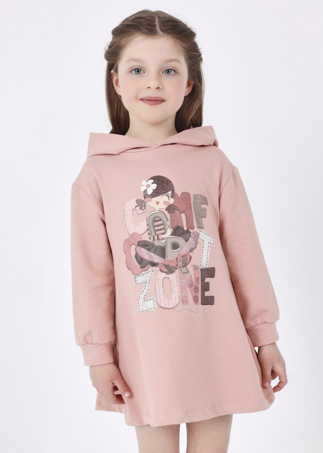 Sukienka z długim rękawem i kapturem dla dziewczynki.