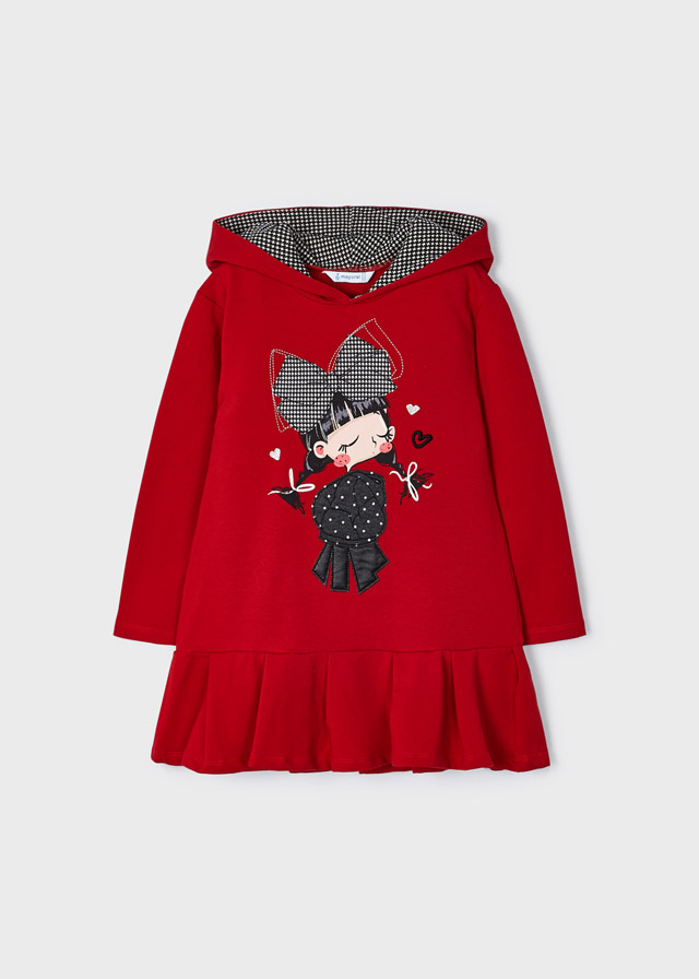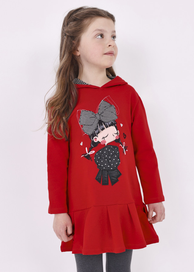 Sukienka z długim rękawem i kapturem dla dziewczynki.