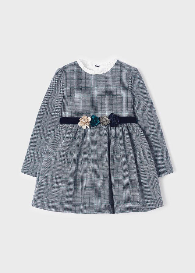 Sukienka ze wzorem z paskiem z kwiatkami dla dziewczynki