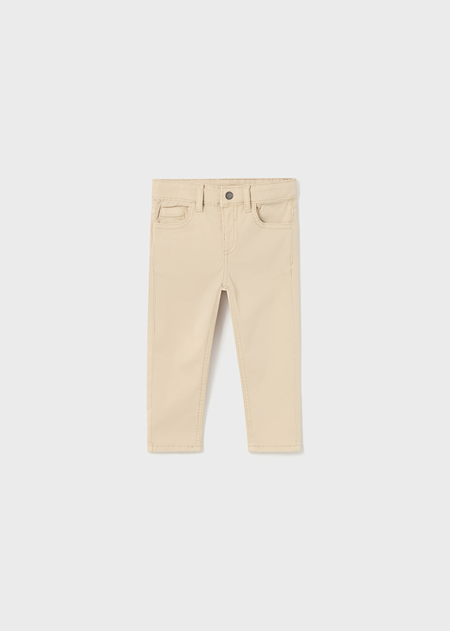 Długie spodnie dla chłopca o dopasowanym kroju (Slim fit). Zapięcie z przodu na zatrzask. Regulowana gumka w pasie dla lepszego dopasowania. Wygodna i trwała tkanina z serży. Funkcjonalne kieszenie zarówno z przodu jak i z tyłu ubranka.
