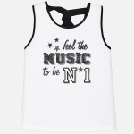 Koszulka Mayoral na ramiączkach dla dziewczynki z oryginalnym tyłem. Z przodu nadruk graficzny w czarnym kolorze.