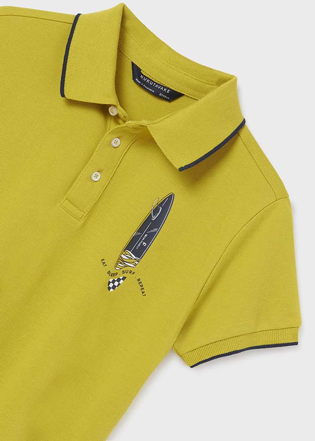 Polo z krótkim rękawem dla chłopca. Klasyczny kołnierzyk polo. Projekt z nadrukiem.