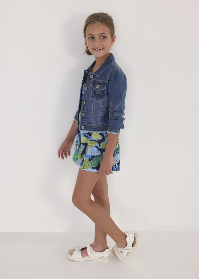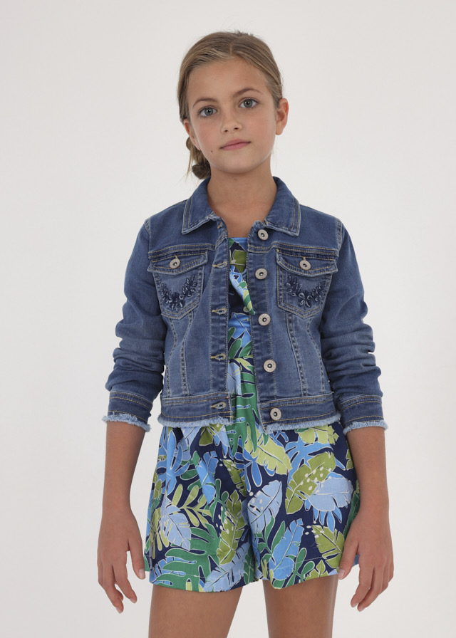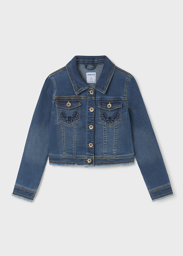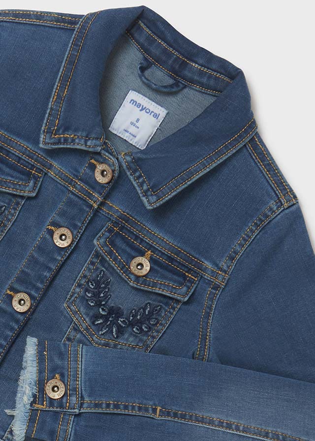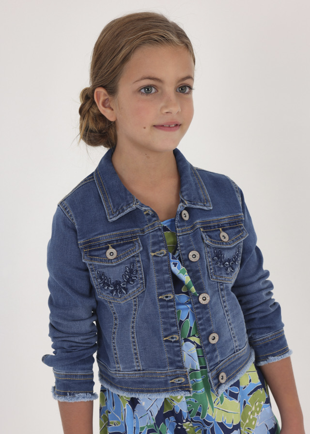 Kurtka jeansowa z haftem z bawełny dla dziewczynki