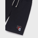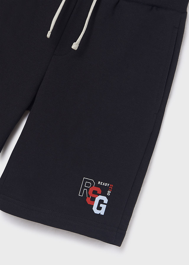 Krótkie spodnie typu bermudy dla chłopca. W pasie wewnętrzny sznurek do regulacji. Kieszonki po bokach.