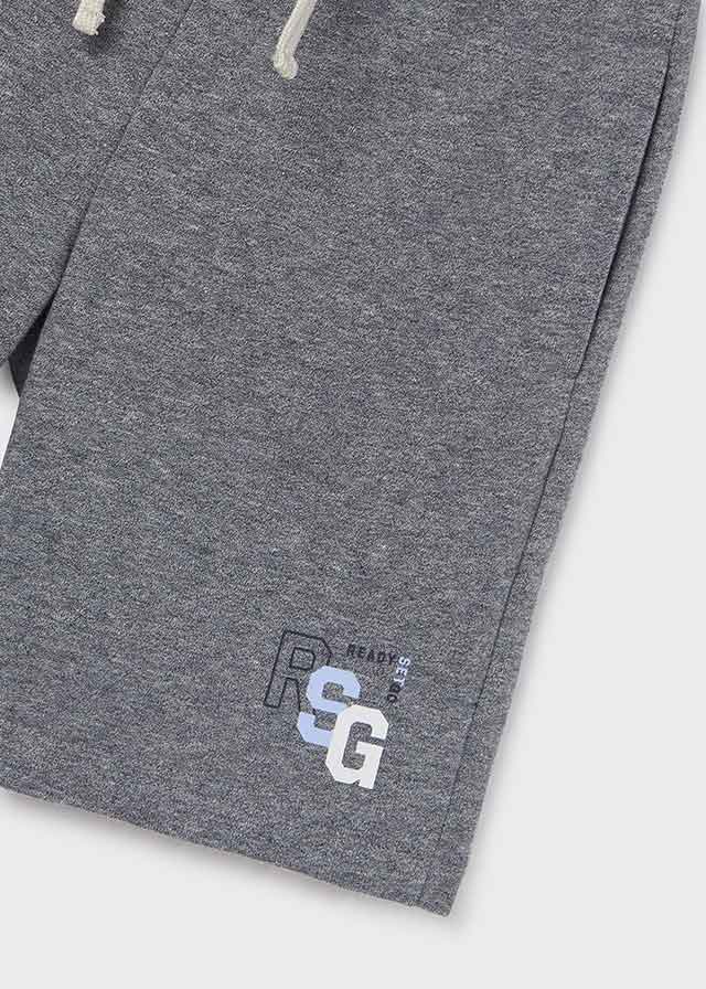 Krótkie spodnie typu bermudy dla chłopca. W pasie wewnętrzny sznurek do regulacji. Kieszonki po bokach.