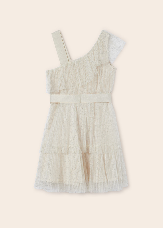 Sukienka asymetryczna z tiulem i metaliczną nitką dla dziewczynki