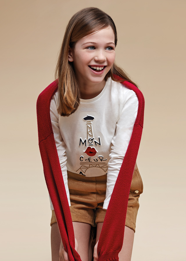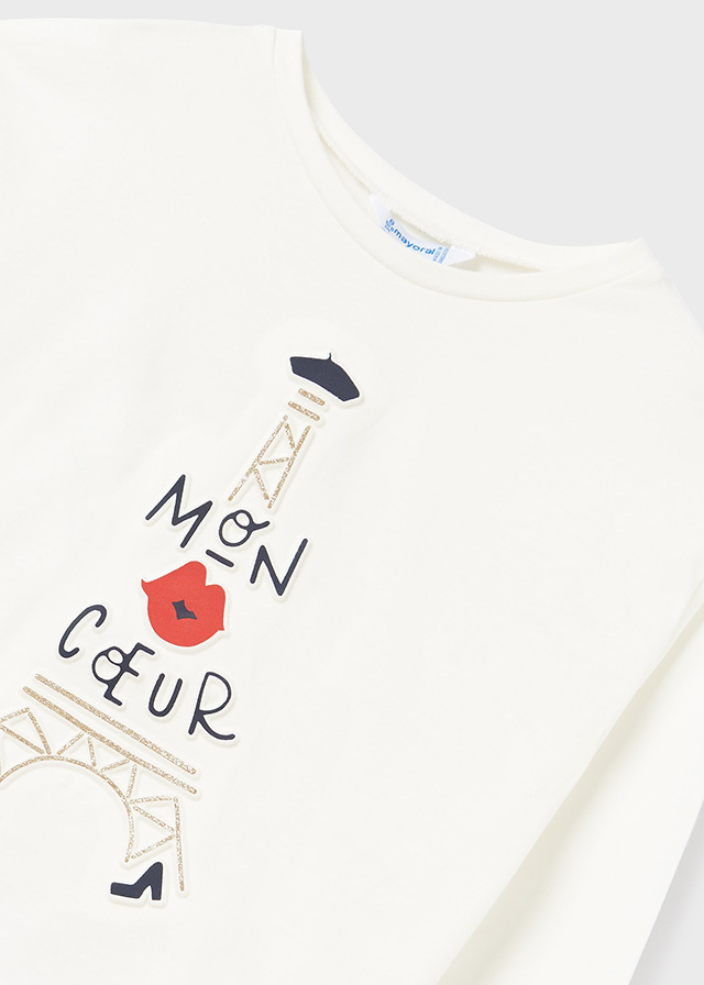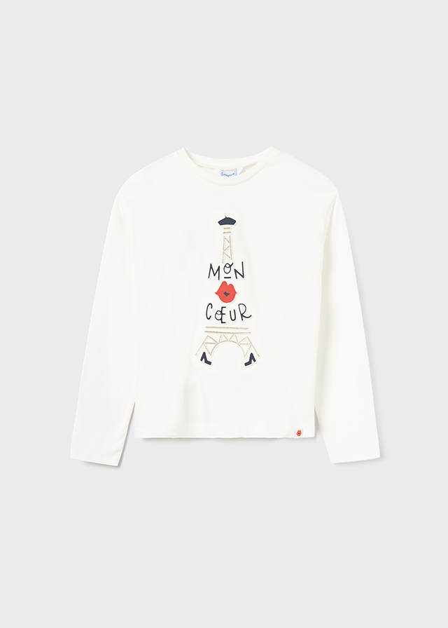 Bluzka długi rękaw grafika nadruk wieża Eiffla bawełna dla dziewczynki