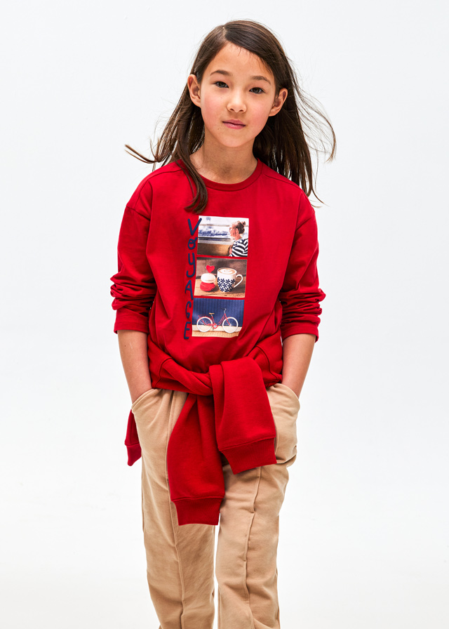 Bluzka długi rękaw grafika nadruk bawełna dla dziewczynki