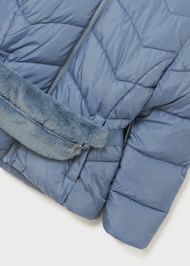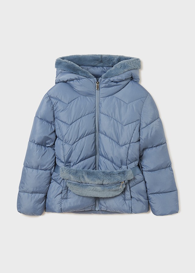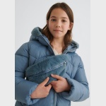 Wypełnienie ECOFRIENDS 100% poliester z recyklingu. Kurtka z długim rękawem dla dziewczynki. Model z kapturem. Zapięcie na środku na zamek błyskawiczny.
