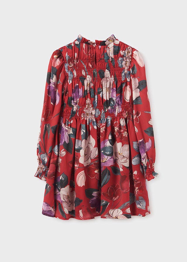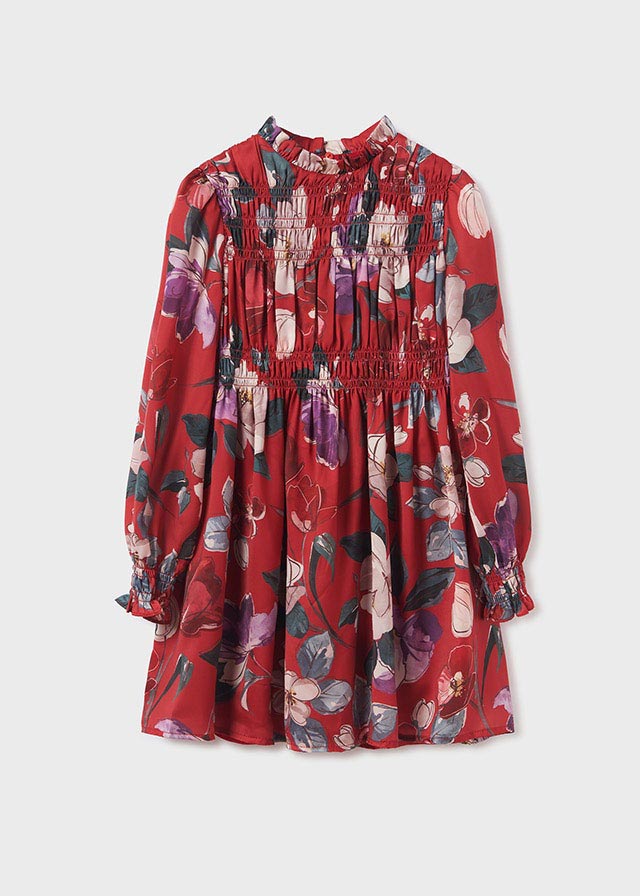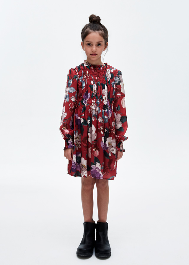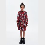 Sukienka idealnie dopasowuje się do ciała dzięki gumce w pasie i na rękawach.