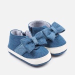 Uniwersalne buty dla dziewczynki Newborn w stylu casual. Wygodna podeszwa platforma z antypoślizgowej gumy, aby cieszyć się większą amortyzacją. Zapięcie na boczny suwak, który pozwala na szybkie i łatwe założenia butów. Ozdoby: aplikacja w postaci kokardki. Artykuł ten jest pakowany w pudełeczko z linii Newborn, idealnie pasujące na specjalne okazje.
