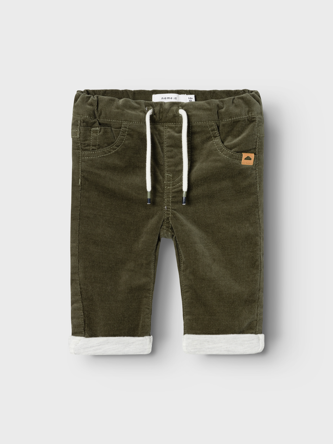 NAME IT 1202 Spodnie Ben sztruks miękkie zielone