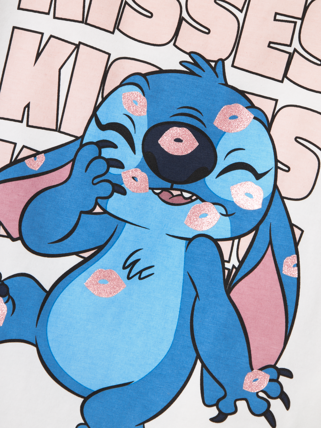 Z przodu bardzo dziewczęcy, kolorowy nadruk z bohaterem bajki „Stitch”