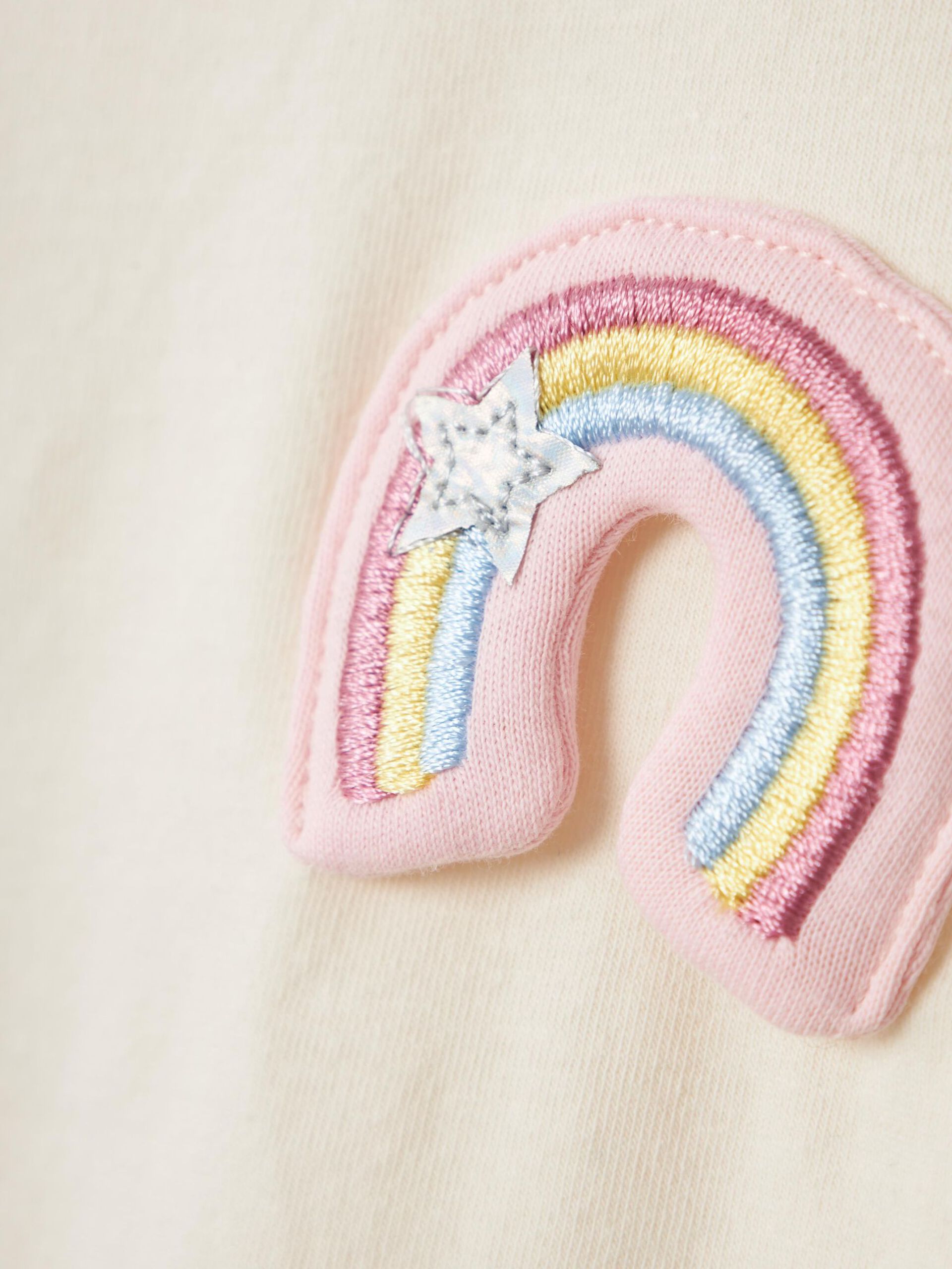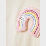 Z przodu delikatne zdobienie w naszywki tęczy.
