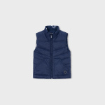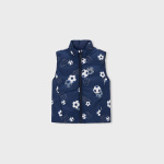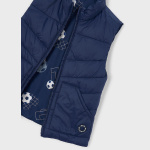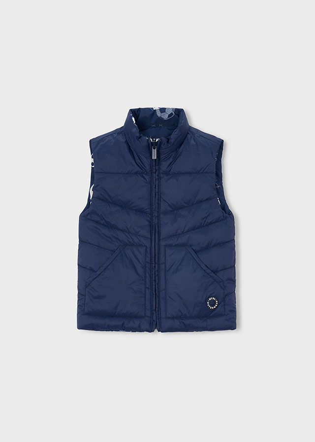 Granatowa pikowana dwustronna kamizelka z motywem piłek dla chłopca.