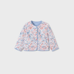 Błękitna, dwustronna kurtka z motywem kwiatów dla dziewczynki .