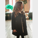 Ten stylowy płaszcz to idealny wybór na chłodniejsze dni. Wykonany z wysokiej jakości, miękkiej tkaniny, zapewnia ciepło i komfort noszenia. Klasyczny, lekko rozkloszowany krój pięknie się układa, a ozdobne guziki dodają całości elegancji. Płaszcz ma delikatną podszewkę oraz praktyczne zapięcie na guziki, które ułatwia samodzielne ubieranie.