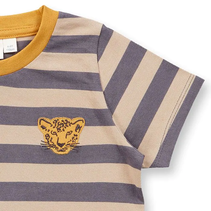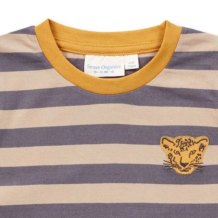 Kolor antracytowo – piaskowy w paski z motywem lamparta.