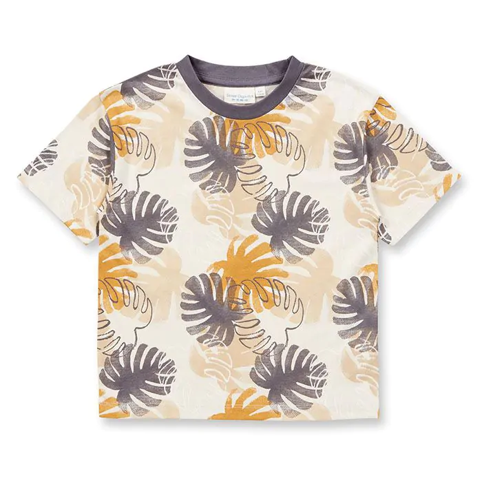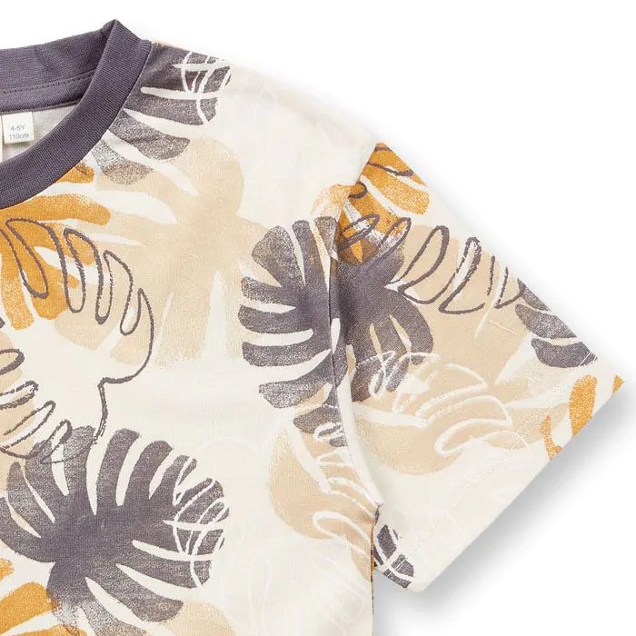 Nadruk liści w akwarelowym stylu na białym tle.