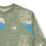 Na całości roślinny nadruk w stonowanych, ekologicznych kolorach.