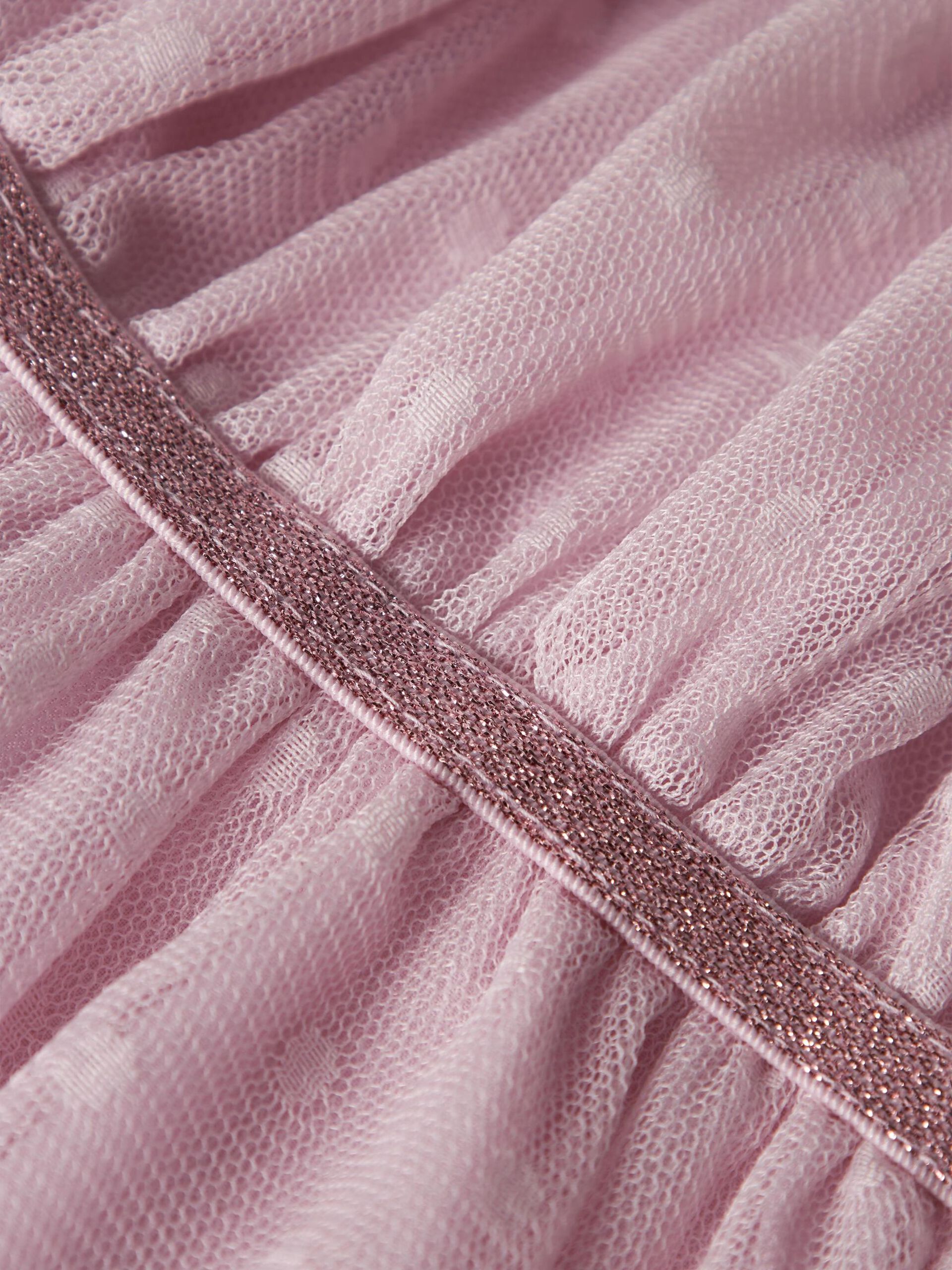 Tiul to lekki materiał o strukturze przypominającej siatkę, który wygląda bardzo elegancko.