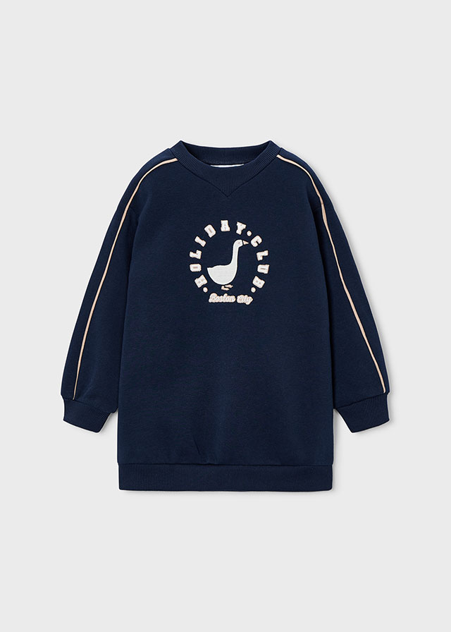 Sukienka dla dziewczynki zaprojektowana z myślą o chłodniejszych dniach. Wykonana z ciepłej, grubej dzianiny, która doskonale chroni przed zimnem, zapewniając jednocześnie wygodę i swobodę ruchów. Klasyczny okrągły dekolt sprawia, że model jest uniwersalny i łatwy do zestawienia z innymi elementami garderoby.