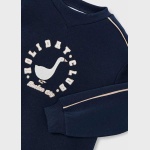 Uwagę przyciągają starannie dobrane detale: ozdobna aplikacja, haft oraz kontrastujące pasy, które nadają całości nowoczesnego i dziewczęcego charakteru. To idealna propozycja zarówno na co dzień, jak i na specjalne okazje w sezonie jesienno-zimowym.
