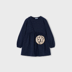 W zestawie znajduje się sukienka z długim raglanowym rękawem i subtelnym dekoltem w łódkę. Wykonana z grubej, ciepłej dzianiny, doskonale sprawdzi się w chłodniejsze dni. Starannie zaprojektowana, by zapewnić wygodę noszenia i ochronę przed zimnem. Delikatne marszczenia dodają sylwetce lekkości i dziewczęcego charakteru.