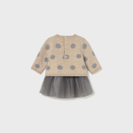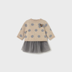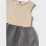 Sukienka na ramiączkach dla noworodka. Okrągły dekolt. Projekt z koszulką. Zapięcie na zatrzaski na plecach. Artykuł wykonany z lekkiego i zwiewnego tiulu.