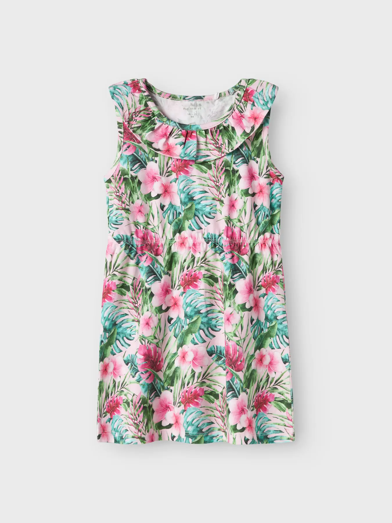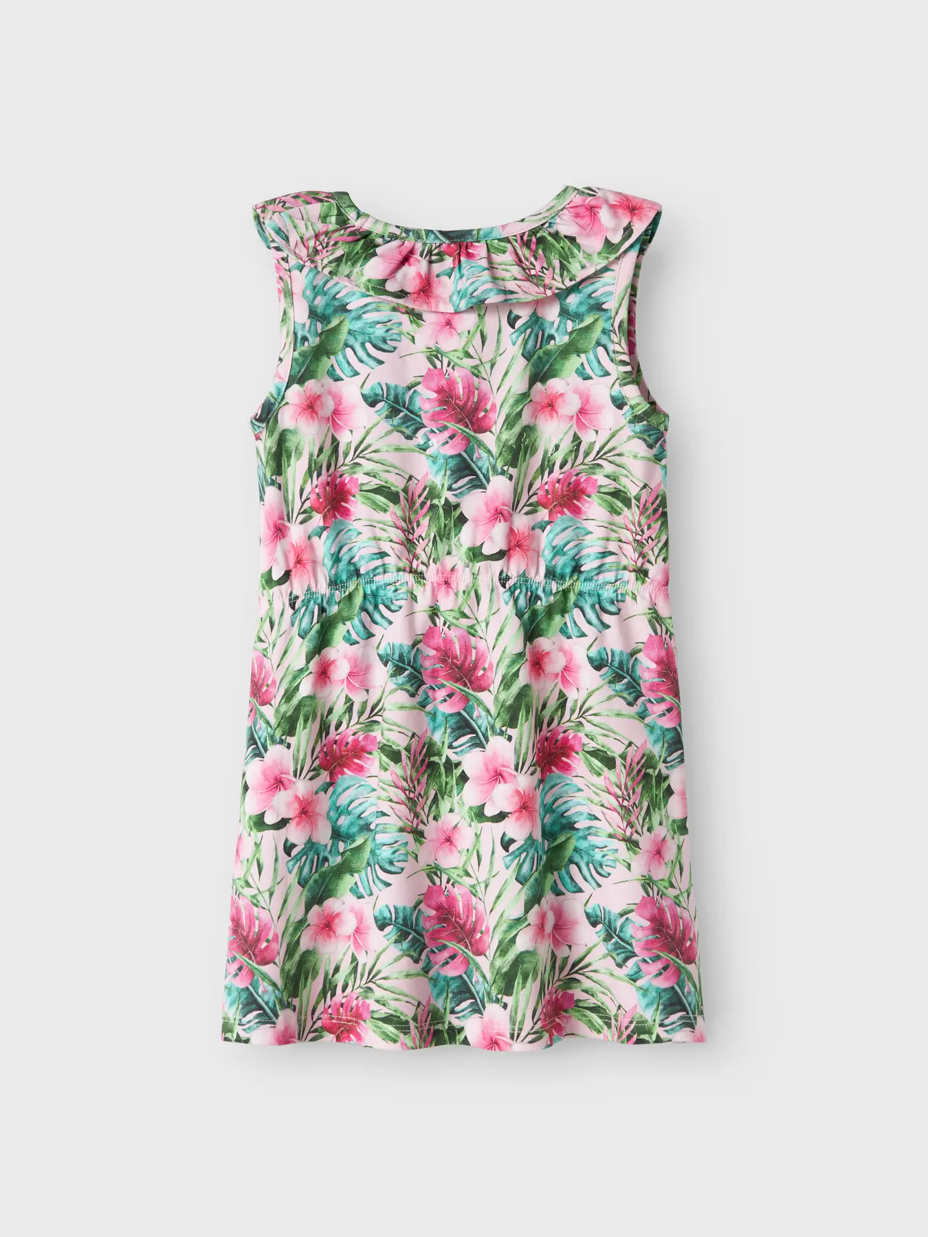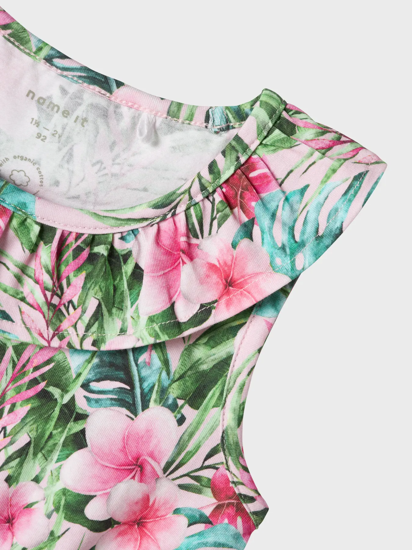 Na całości uroczy nadruk tropikalnych kwiatów.