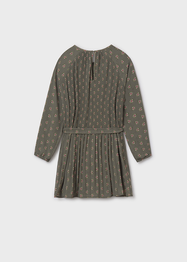 Urocza, plisowana sukienka z nadrukiem to idealny wybór na specjalne okazje i codzienne stylizacje. Okrągły dekolt i elastyczne mankiety zapewniają wygodę noszenia, a małe rozcięcie na plecach z zapięciem na guzik ułatwia zakładanie. Całość dopełnia pasujący, regulowany pasek, który podkreśla talię i dodaje sukience elegancji.