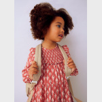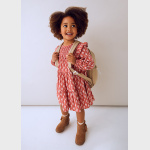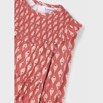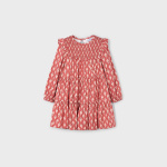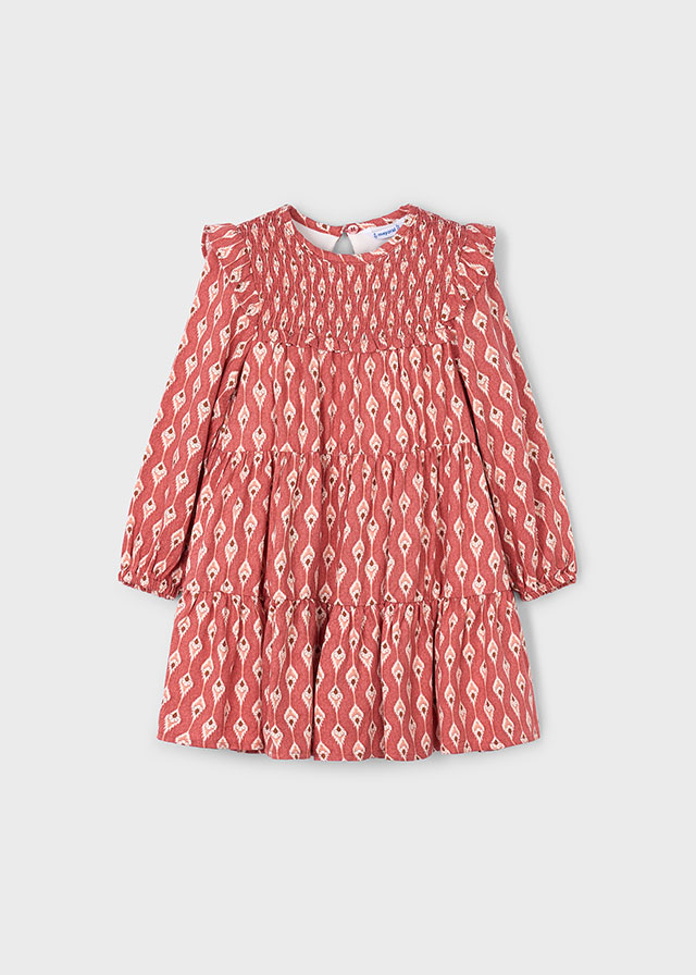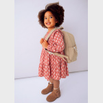 Sukienka dla dziewczynki z falbankami na ramionach. Okrągły dekolt. Zapięcie na jeden guzik. Ciepła tkanina, idealna na najchłodniejsze dni. Ten model posiada marszczenia. Model z marszczeniami. Model z nadrukiem.