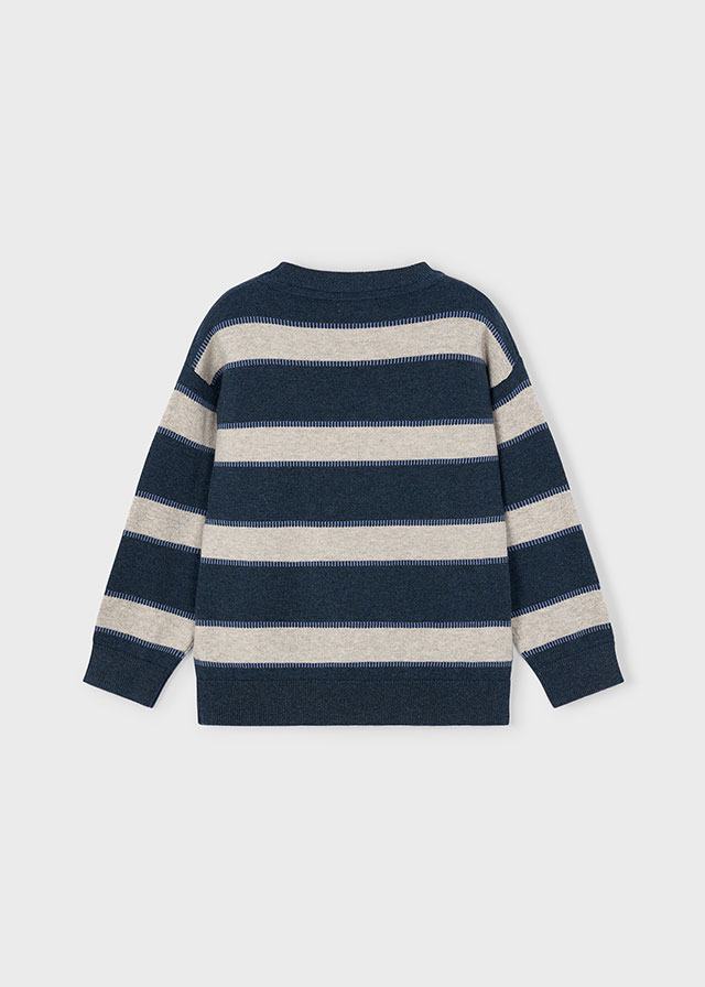 Stylowy i komfortowy sweter dla chłopca, idealny na chłodniejsze dni. Wykonany z miękkiej, elastycznej dzianiny trykotowej, która jest przyjemna w dotyku i zapewnia wygodę noszenia przez cały dzień. Klasyczny okrągły dekolt i modny motyw w paski sprawiają, że sweter świetnie sprawdzi się zarówno w codziennych stylizacjach, jak i podczas bardziej formalnych okazji. Ten model zawiera poliamid z recyklingu, co czyni go bardziej przyjaznym dla środowiska. To świadomy wybór dla rodziców, którzy stawiają na zrównoważoną modę i wysoką jakość ubrań dziecięcych.
