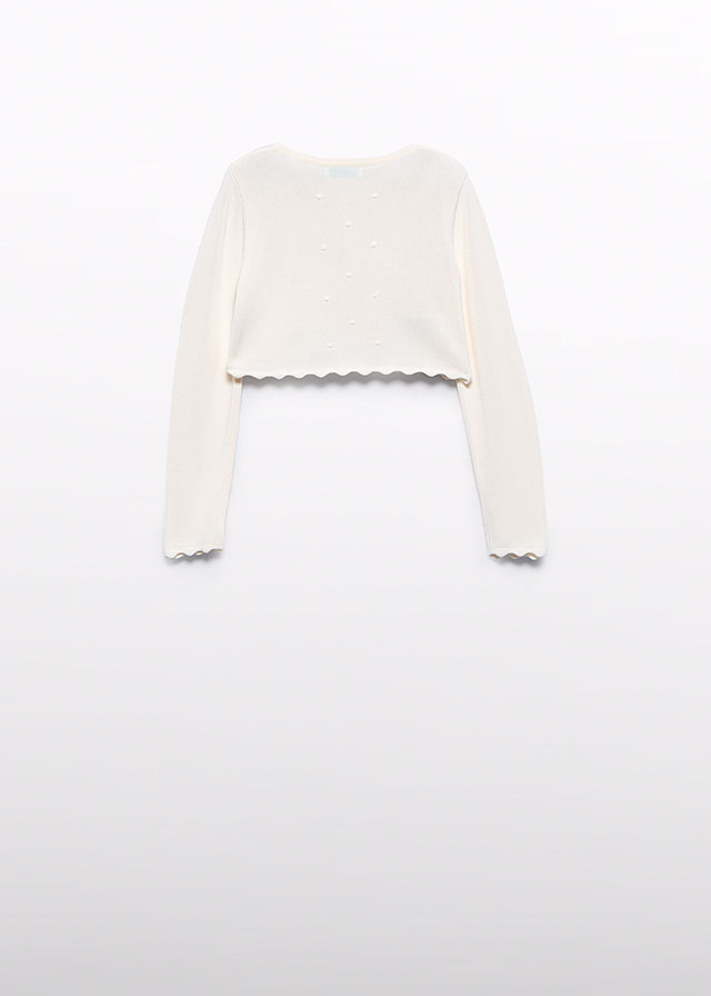 Krótki fason sprawia, że cała kreacja pod sweterkiem nie traci uroku, a krótki rękawek nie jest problemem.