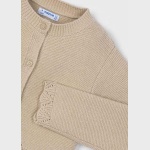 Uroczy i stylowy sweterek dla dziewczynki, który łączy wygodę z subtelnym, dziewczęcym urokiem. Model posiada zapięcie z przodu na guziki, co ułatwia zakładanie i zdejmowanie, a jednocześnie dodaje klasycznego charakteru.