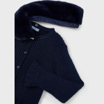 Dziewczęcy sweterek z futerkowym kołnierzem – granatowy. Elegancki sweterek dla dziewczynki w klasycznym granatowym kolorze, zapinany z przodu na guziki. Model wyróżnia się miękkim, futerkowym kołnierzem, który dodaje stylu i przytulności. Wykonany z przyjemnego materiału, idealnie sprawdzi się w chłodniejsze dni. Uniwersalny fason sprawia, że sweterek pasuje zarówno do codziennych stylizacji, jak i bardziej eleganckich okazji. Must-have w każdej dziecięcej szafie!